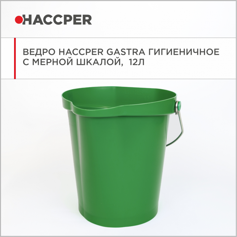 Ведро HACCPER Gastra гигиеничное с мерной шкалой, 12л, зеленое