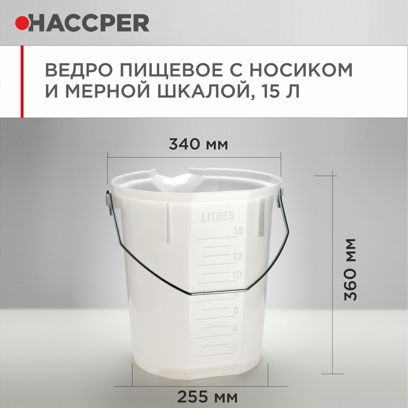Ведро пищевое HACCPER с носиком и мерной шкалой, 15л, белое